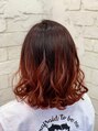 レッドグラデーションボブ小顔姫カットセミディカール所沢韓国