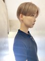 ハイトーンベージュの刈り上げショートスタイル。サイドはツーブロック、バックはグラデーションに刈り上げて、刈り上げマッシュから徐々に伸ばしていく感じです。