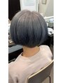 モノトーンからの毛先に、ブルーのグラデーション^_^自然に脱白髪^_^