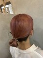 ミディアムレイヤー オレンジピンク 大人可愛い くびれヘア