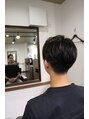 サイドは6mmツーブロックでナチュラルパートスタイル。ビジネスシーンでもプライベートでも行けるヘアスタイルです。