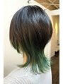 鎖骨ラインであご上のウルフで切り、インナーにグリーンを入れました!