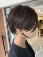 ハンサムショート、オリーブベージュ、前下がり、センターパート