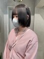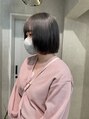 ボブのカットの中に、トレンドの顔まわりレイヤーを。顔まわりのみでも雰囲気がガラッと変わるのでオススメです!カラーは暗めでありながらも透明感たっぷりのグレージュに。透け感がでます