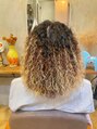 細かめにスパイラルパーマを当てたスタイルです。ムースを使ってスタイリングしています。