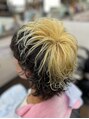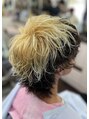 ウルフスタイルにカットして、トップに動きを出しつつ、ダブルブリーチを施術し、ハイトーンのアンブレラカラーをさせて頂きました。