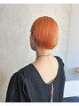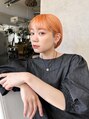ブリーチ一回で濃いめのオレンジ、モデルさんは2回程ブリーチしてます!伸ばしかけのショートをボブに