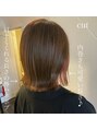 インナーブリーチ1回施術、イヤリングカラーオレンジ・ベースカラーオレンジベージュー×ボブ