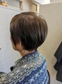 ショートボブ/丸みショート/ひし形シルエット/30代/40代/50代/60代/70代/厚めバング/簡単スタイリング/艶カラー/大人かわいい/カジュアル/大阪ショート/吹田ショート/豊中ショート/千里山ショート/関大前ショート/手櫛ショート