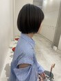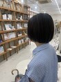 襟足ギリギリのミニボブ。黒髪でも重たすぎないようにカットで束感を出してます。前髪はシースルーで透け感を。