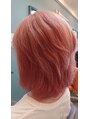 ブリーチの根元リタッチ後、カラーをキレイに入れるために毛先にもブリーチ剤を馴染ませました。その後ピンク染めました。眉カラーもしてヘアの明るさを合わせました。ドライ後はオイルを使用して艶感&軽やかさを出しました。