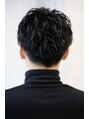 耳上と襟足を刈り上げたツーブロックマッシュ。トップにレイヤーを入れて柔らかく色気のある質感に!バングをセンターパートにして作りすぎない自然な毛流れが男を上げる!スパイラルのミックスパーマをかけて大人男子のこなれ感・好感度UP!