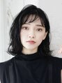 ゆるふわパーマをかけたお洒落ミディアムスタイル!前髪はシースルーバングにして、肩上ラインベースにレイヤーを入れる。ウェーブパーマを柔らかくかけて洗いざらしでキマる髪型。黒髪でも360度どこから見ても大人カッコ可愛いフォルムに。