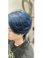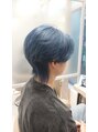 全体ブルーからのブルー過ぎないブルーで カットはセンター分けウルフカット