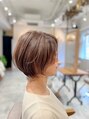 ボブっぽさのあるショート。抜け感はスライドカットで一人一人に合わせます。カラーはハイライトとローライトをブレンドしてコントラストをプラスします。