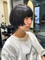 ショート・ミディアム、パーマスタイル、小顔に見せる前下がりボブ、流れやすい斜めバング、ツヤ・透明感カラーが得意☆一番お客様に似合うヘアをご提案☆落ち着いた黒髪でも可愛いヘアスタイルに☆【aimi】