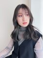 セミロングベースにブリーチなしで出来るグレーカラー、モノトーンベージュです。