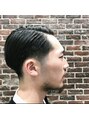 周りは低めのスキンフェードでテーパーフェードにし、上は長めに残してなるべくタイトめに潰してクラシカルに収めたサイドパートスタイルです!