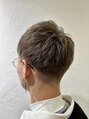カットは0.5mm~のフェードでサイドツーブロック。えり足はグラデーション。ジェットモヒカンになります。カラーは1回ブリーチでシルバーグレージュにしました。光の当たり具合でカラーの見え方がかわり、持ちもいい色味になります。※ブリーチ必須