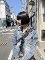 骨格に合わせて顎上にラインを設定。ほぼ水平ラインのミニボブです。縮毛矯正毛なのでぱつっと真っ直ぐになりすぎないように量感、質感を整えナチュラルに丸みが出るように仕上げました!オイルのみでささっとスタイリングできる、ボブスタイルオススメです!