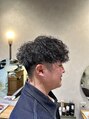 メンズのプードルパーマ。マッシュベースに強めのパーマをランダムにかけました。ツイストスパイラルと違いパサパサしないので、おススメです。