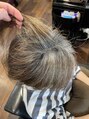 初回から2回連続でハイライトで毛先の暗い白髪染めを除去。今回からブリーチはせずに、白髪を活かしてカラーしていく事に!白髪が天然のハイライトになり、透明感と立体感を出してくれるようになりました!