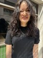 肩下15cmのロングをベースに前髪から顔まわりにはしっかりレイヤーを入れて、全体に動きが出るように程よくレイヤーを。シルエットはナチュラルさも感じるようにAラインを大切にしつつ、カーリーなウェーブをデザインポイントに。