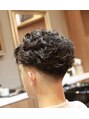 <理容室><バーバー>全体に動きが出やすいようにパーマをかけ周りはスキンフェードでスタイルに締まりを出す。海外風スタイル!