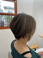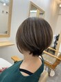 ハイライトは細かく、多めに入れています。白髪との馴染みも良いのでオススメです。スタイルは人気の【くびれショート】です。