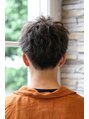 リーゼント風に仕上げた、ショートスタイル。顔型補正や骨格補正にもなるので、お勧めです。