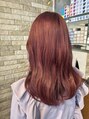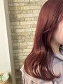 ブリーチで根元のリタッチをして全体をピンクにさせていただきました!ピンク感を強めに出すために少し暗めに色を入れています!