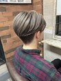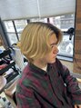 欧米風のメンズカラー。ブリーチをしたのちに、ベージュメインの調合をブレンドし、お客様に合わせてダブルカラー。カットもばっさりツーブロックです。品のあるハイトーンはおまかせください!