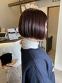 ブリーチなし艶感レッドピンクカラー切りっぱなしボブ