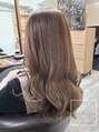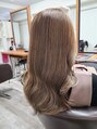 ブリーチなしハイトーンカラー、ミルクティーベージュ☆ 柔らかい透明感が巻き髪をより美しく魅せてくれます◎ ※お髪の状態により、複数回カラーが必要な場合がございます。