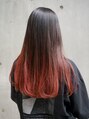 毛先にブリーチが入っているベースをいかして毛先にレッドを◎