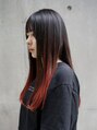 毛先にブリーチが入っているベースをいかして毛先にレッドを◎
