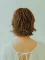 ゆるふわ外ハネボブスタイル!前髪はぱっつんの重めにして毛先を外ハネにすることによって、軽く見えます。外ハネだけだと抜け感が出ないので、表面に巻きをいれます。重めシルエットなので明るめのカラーがおすすめです!