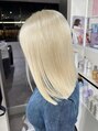 7734ブロンドベージュハイトーンカラー切りっぱなし韓国ボブ/ホットペッパービューティー