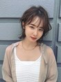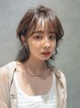 ミディアムボブに顔周りはレイヤー(段)をいれて少し軽さを出しています。直毛の人はパーマを当ててふわふわにしてあげても大人かわいい感じに仕上がります。