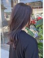 このスタイルは、ハイライト履歴を生かして、パープルのコントラストをつけています。レイヤーは高めに入れてふわっと、巻きやすくしています。