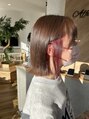 インナーカラーを少し濃いめのピンクにして色落ちも楽しめるようにしました。カットは切りっぱなしボブで軽く外に巻いてます