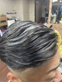 極道パーマにメッシュブリーチをしてメッシュの部分だけにスモーキーシルバーを入れました。