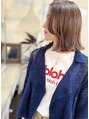 ショルダーレングスのボブ ナチュラルブラウンとライブラウンベージュのコントラスト、仕上げはナチュラル。