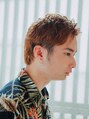 サイドはツーブロックのすっきりショートスタイルです。ハイトーンなのでワイルド感もプラス◎ハチ張りの方にもおすすめで、かぶってくる上の長さは骨格に合わせて調整してます。長さがあることでパーマ風の動きのあるスタイリングが出来ちゃいます!
