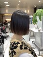 切りっぱなしボブで内側ん短くしてまとまりやすくしています。