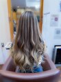 プルエクでハイライト20本取り付けしました!白っぽいハイライト部分がエクステをつけたところです!