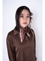 ヘアは、ぱっつとした感じがこなれ感を演出しますポイントにお花のコサージュとスカーフの素材感やカラーで女性らしい柔らかさも感じさせます。