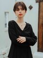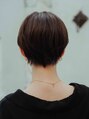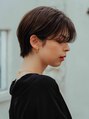 前髪に長さを残した大人っぽいショートヘアスタイル。幼い印象になってしまいやすいショートヘアスタイルを、落ち着いたカラーリングと目にかかるくらいの長さに調節した前髪で大人っぽい洗練された雰囲気を作っています。