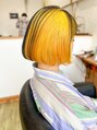 このスタイルは内巻きボブに、アンブレラカラーでパンチのきいたデザインヘアーです。