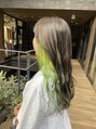 推しカラーのイヤリングカラー♪2回ブリーチ必須のカラーになります!緑色が推しの方におすすめの色落ちで緑が残らず綺麗なベージュになるカラーです!